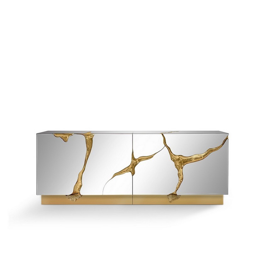 Consisting of two individual modules, the Lapiaz sideboard is finished in polished stainless steel that portrays a perfect mirror, with a poplar root wood veneer on the inside. Curated design goes hand in hand with artistic elements and Lapiaz is a reflection of that. How beautiful is it?