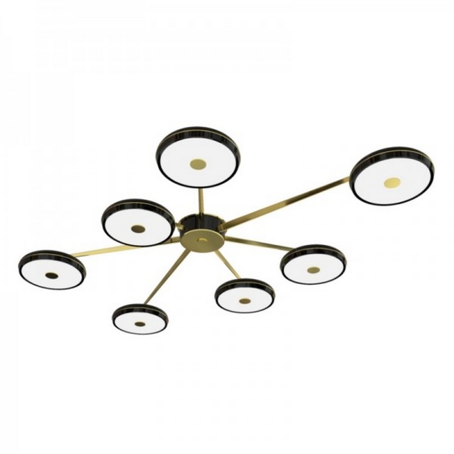 Drawing inspiration by the industrial visual appeal, Triptico is a versatile suspension lamp that balances the finest craftsmanship with innovative design. Composed by a set of three black pendant lights hanged by a round structure, this eclectic lighting piece presents an adjustable arrangement in a harmonious ensemble. Semi-spherical brass elements of dark brass external finish pair with a precious polished brass internal coating.