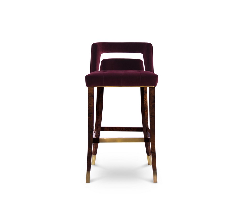 Guatemala was the stage of one of the most important discoveries in the 20th Century – the Naj Tunich. Inspired by it is the Naj bar chair, a contemporary bar chair upholstered in cotton velvet with nickeled nails and legs in ash with walnut stain matte varnish. This fabric chair is sure to make a statement.