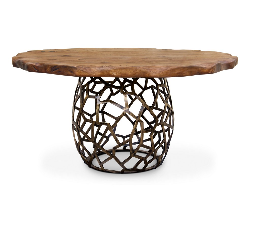 The royalty of the bees, originally called “Apis” in Latin, was the main inspiration for the Apis dining table. It features a small tabletop in stained oak with brass details and a base in matte brass. Place it in a modern dining room and this round dining table is sure to impress.