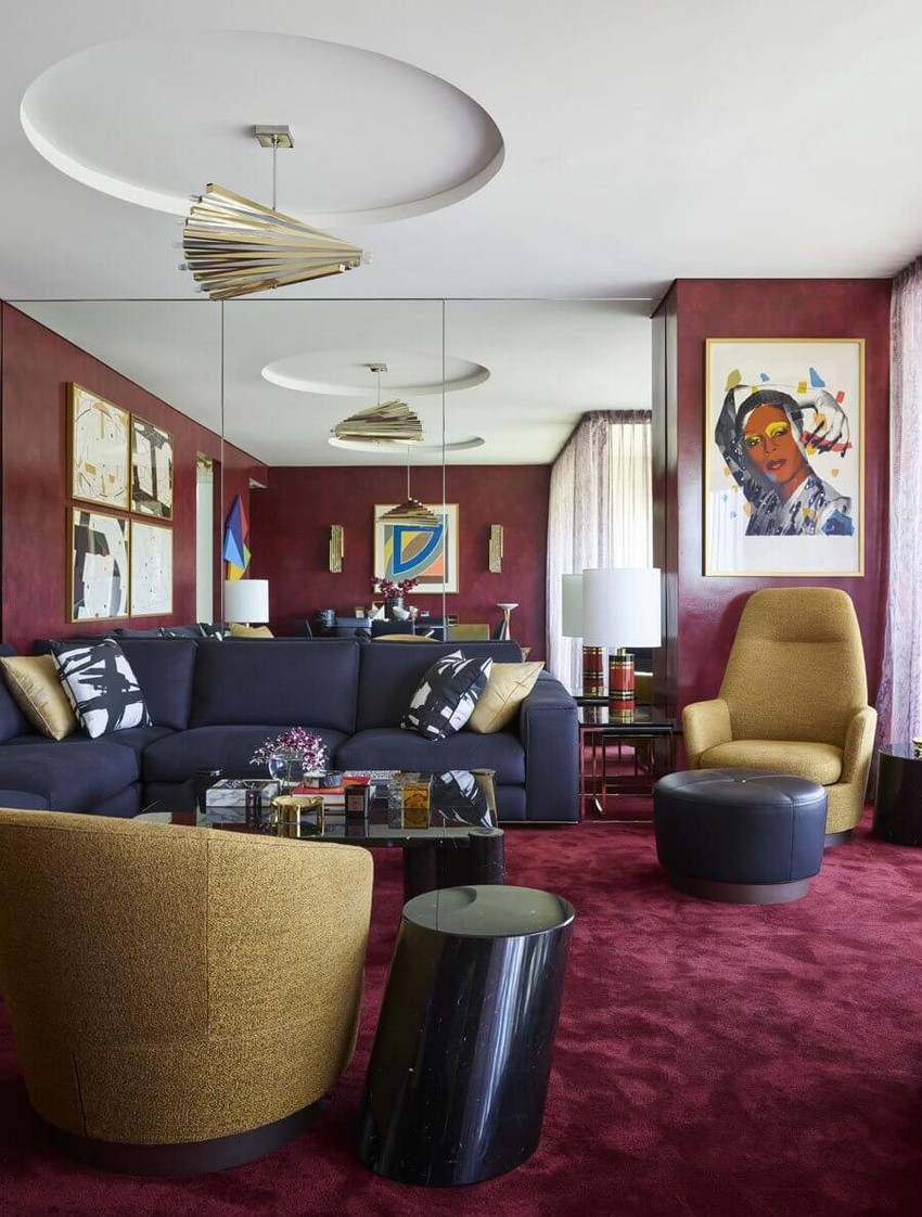 Perched high up in Sydney’s iconic Horizon building, designed in the ’80s by the late Australian architect Harry Seidler, Greg Natale’s own apartment is enjoying its third interior redesign. This latest incarnation has evolved around a sumptuous maroon palette that acts as dramatic backdrop to a lovingly curated collection of art, vintage pieces, contemporary and custom-designed furniture and accessories.