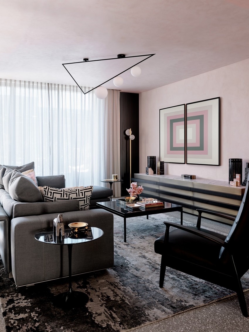 A client’s love for the art-deco-inspired contemporary residence led Grega Natale to collaborate on a fresh take on this popular property – this time riffing on a palette of blush pink, grey and light timber floors. Furnished with a mix of Minotti and European vintage pieces, the four-bedroom home is adorned with Greg Natale decorative accessories in marble, ceramic and the warmth of polished brass.