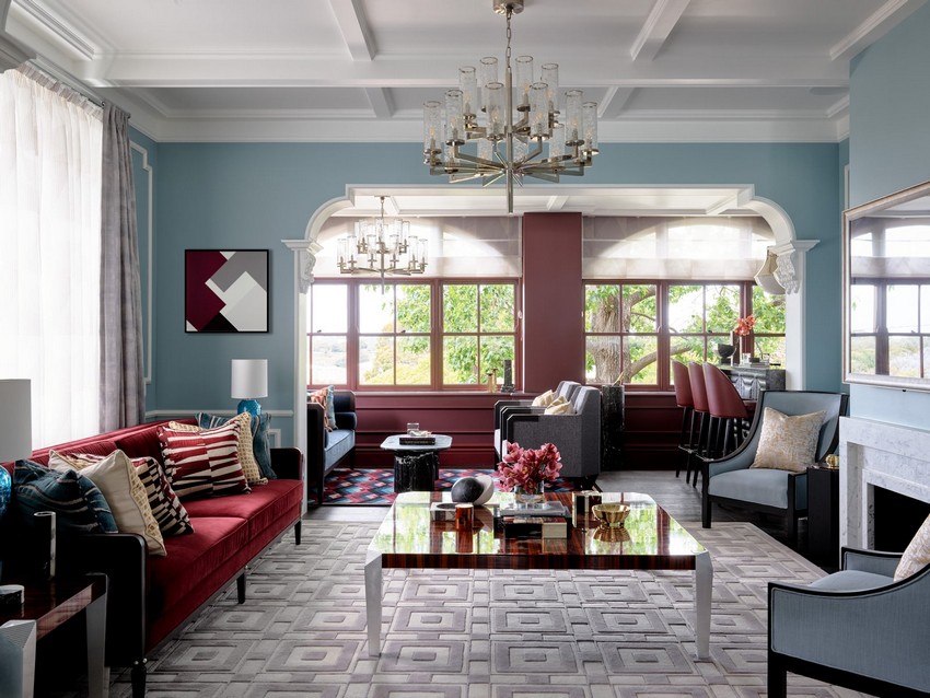 From its elegant blue walls with their white trim to its archways and Art Deco furnishings, this three-story, five-bedroom house is a beautiful fusion of classic style and contemporary living. The Edwardian-era residence underwent a major gutting and reworking, with Greg Natale meticulously recreating original details such as paneled ceilings and doors, and adding French moldings which, although not typical of the era, make a striking feature of the walls. New archways and a relocated staircase provide graceful lines, allowing for better flow between spaces.
