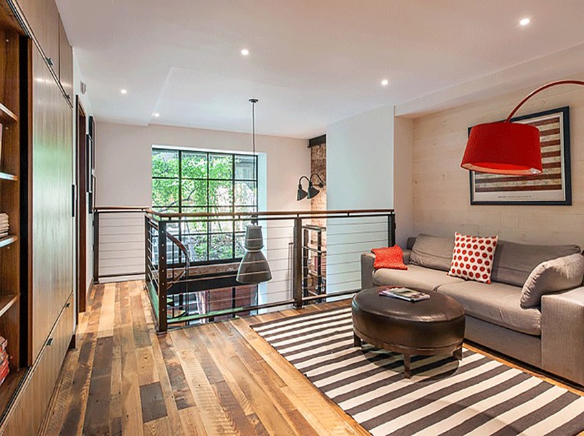 This 3 bedroom, 2 1/2 bath, 1930 townhouse is located in Chelsea’s historic Fitzroy Townhouse complex in Manhattan. The chef’s kitchen opens onto the living/dining area for effortless entertaining. Custom library millwork and metalwork from local Brooklyn craftsmen flank the wood-burning fireplace, and a lovely steel and walnut spiral stair winds its way between levels. A two-story warehouse window and door system open to a bi-level garden with two seating areas and a bluestone patio.