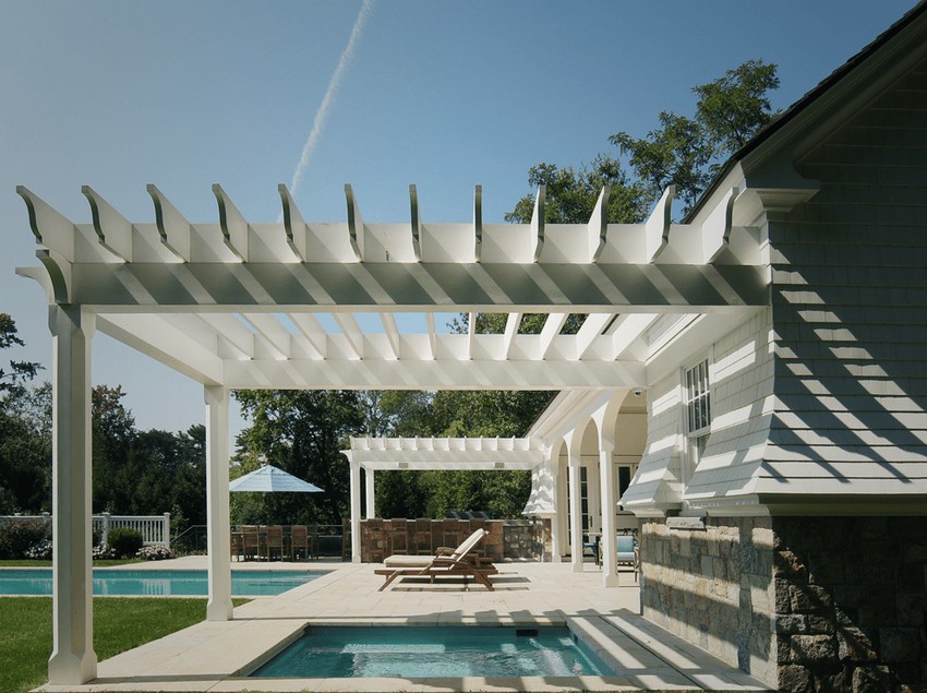 This picturesque pool, pool house, tennis court, and grounds, located in the highlands of Scarsdale, was master-planned to maximize the utilization of the acreage in a locale of stringent regulations while retaining the property’s bucolic serenity. The pool house is flanked by a professional-sized tennis court and gaming lawn while opening to a full-sized inground pool.