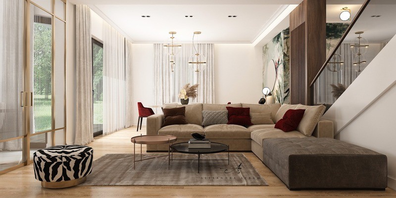 This Romanian interior design project is both fantastically designed and boasts an incredible choice of color, being dominated by browns and other warm colors. Alexandra Shokarova is truly a genius.